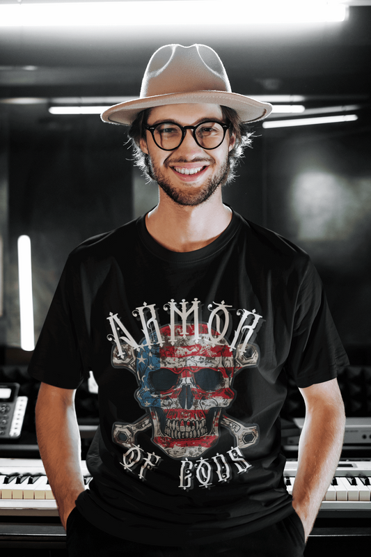 Unisex Oversize classic Cotton Tshirt - Skull Patch - Armor of Gods