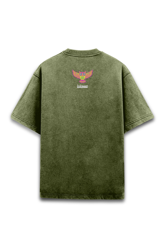 NIRVANA - MATERIAL WORLD - ACID WASH - OLIVE GREEN -Relaxed fit T-shirt with a round neck and short sleeves - Unisex Premium fit