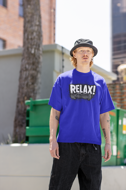 Relax Royal blue Loose Fit - Half Sleeve -FRONT -UNISEX OVERSIZE Cotton Tshirt