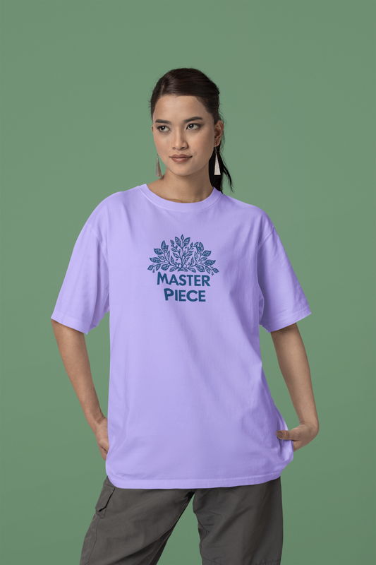 Master Piece Lavendar Loose Fit - Half Sleeve -FRONT -UNISEX OVERSIZE Cotton Tshirt